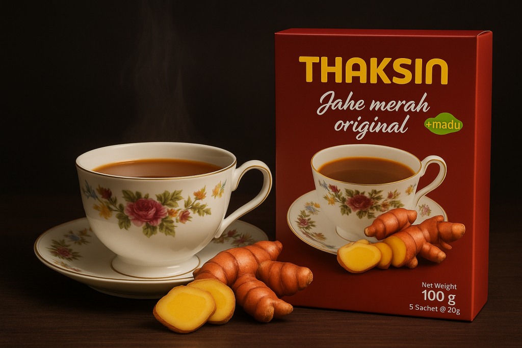 Sensasi Hangat Alami Setiap Hari. Nikmati kehangatan dan energi alami dari Thaksin Jahe Merah Original, minuman herbal yang memadukan jahe merah pilihan dan madu murni.